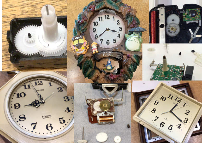 元の機械を直して使えるようになるか、もしダメなら新しい別の機械を利用できないか、元の針が合わない時は座金を変えて元通りにできないか、音が鳴らなくなっても時計部分だけは使えるようにならないか等々状態によって最善の方法を探ってみます。